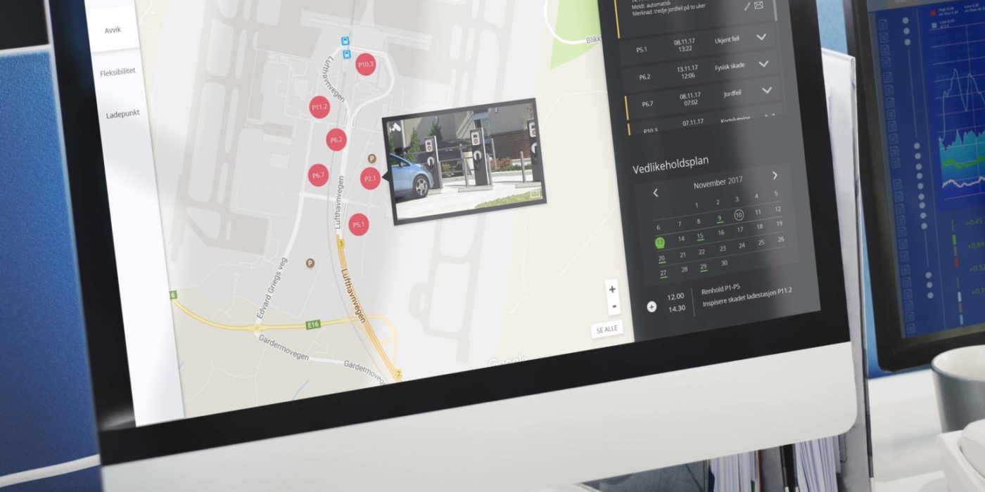 The system shows wattage and load at the EV chargers. A map of deviations and issues where issues can be automatically and manually reported. The map simplifies the maintenance process. Routine maintenance is also scheduled, and the system also handles communication with third party maintenance suppliers.